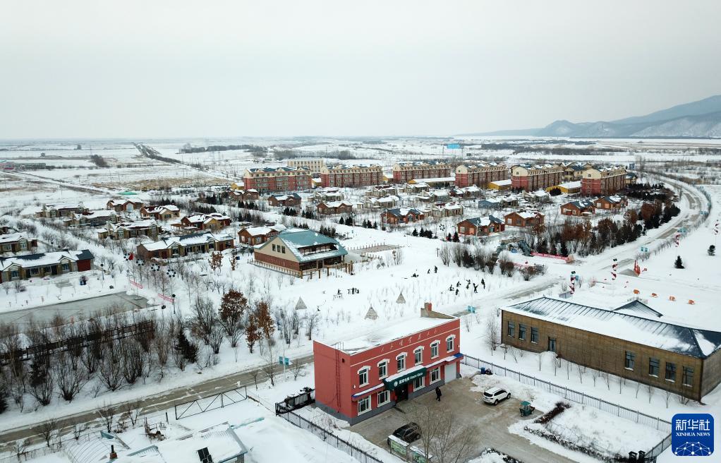 1月11日拍摄的位于黑龙江省抚远市乌苏镇抓吉赫哲族村的国网抚远市供电分公司抓吉供电所(无人机照片)。