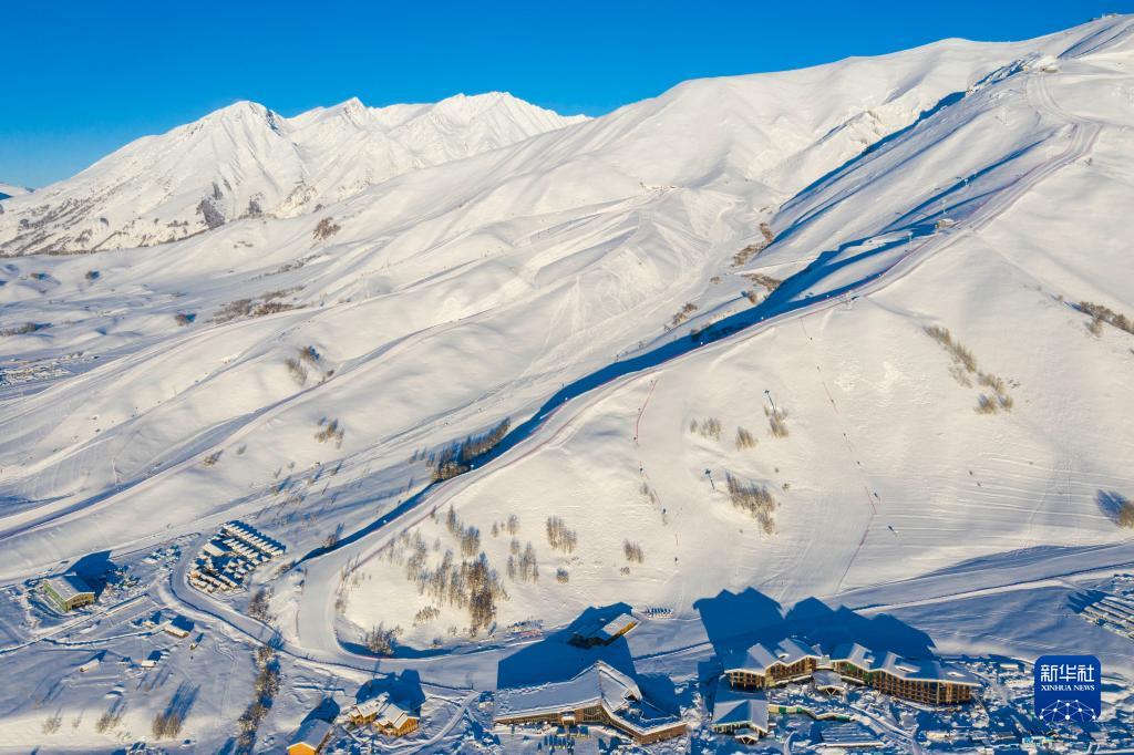 新疆阿勒泰地区禾木吉克普林滑雪场已成雪友眼中的“网红打卡地”(1月12日摄,无人机照片)。