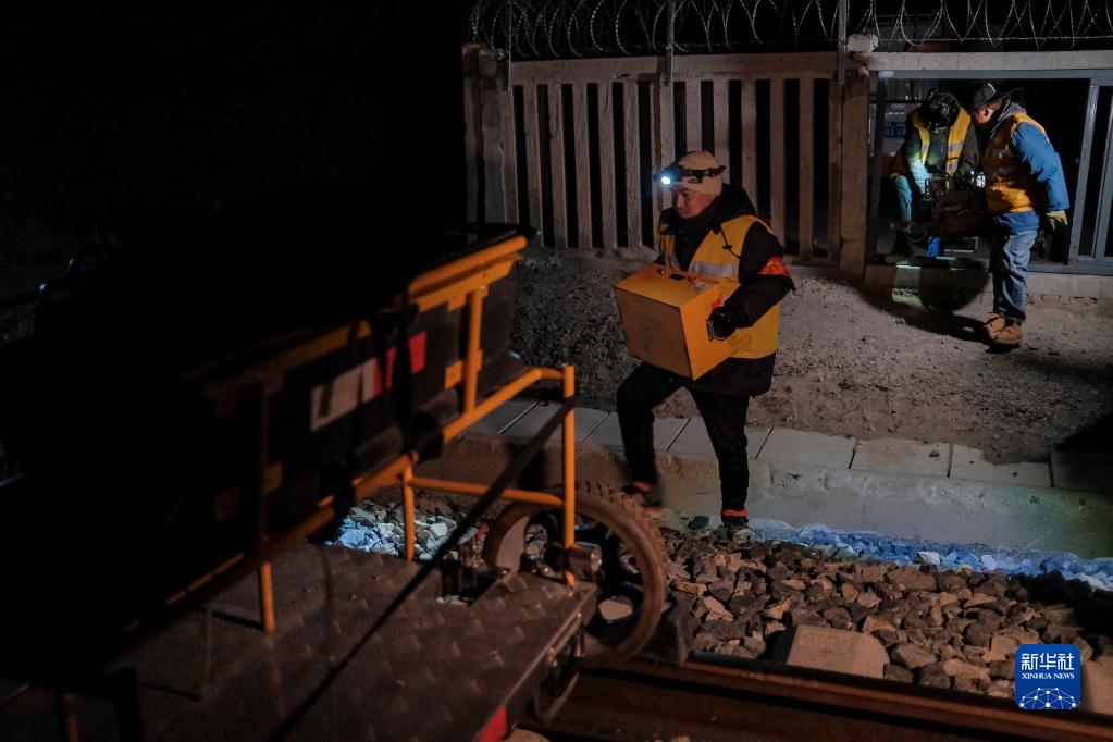 罗布和同事进行钢轨探伤前的准备工作(1月12日摄)。