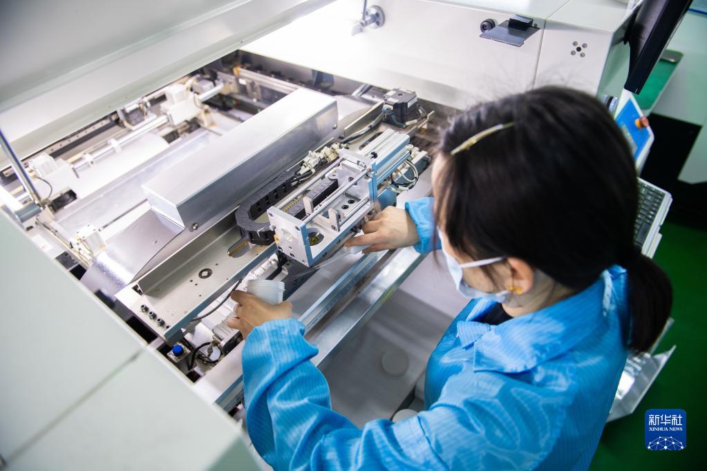 1月13日,在位于常德高新区的常德市捷芯微电子科技有限公司生产车间,工作人员在生产电路板。