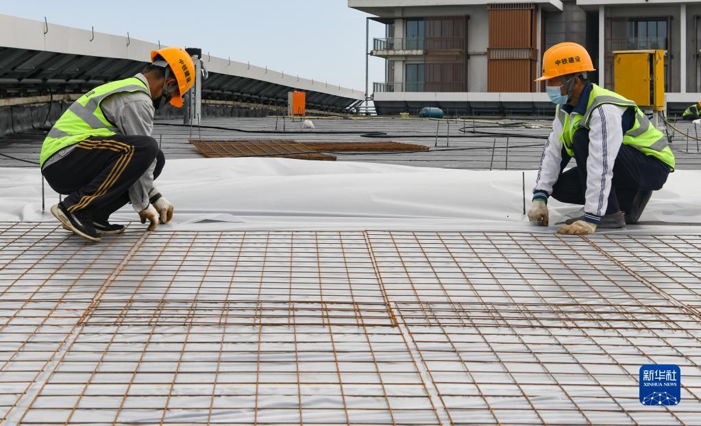 工人在博鳌零碳示范区项目现场施工(1月12日摄)。