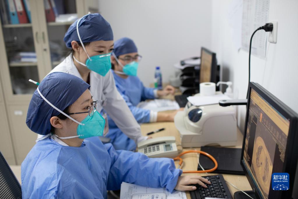 1月12日,在复旦大学附属华山医院虹桥院区急诊抢救室医生办公室,医生查看患者的胸部CT。