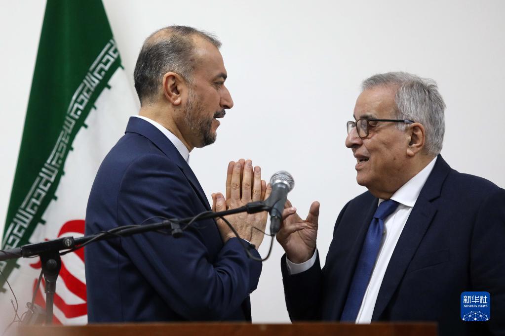 1月13日,在黎巴嫩贝鲁特,黎巴嫩外长哈比卜(右)和伊朗外长阿卜杜拉希扬共同出席新闻发布会。