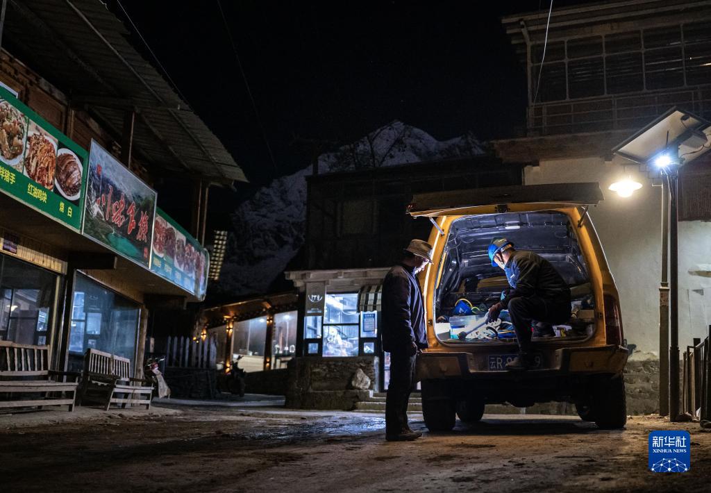 1月8日,旺登在帮助雨崩村村民检修电路前整理材料。