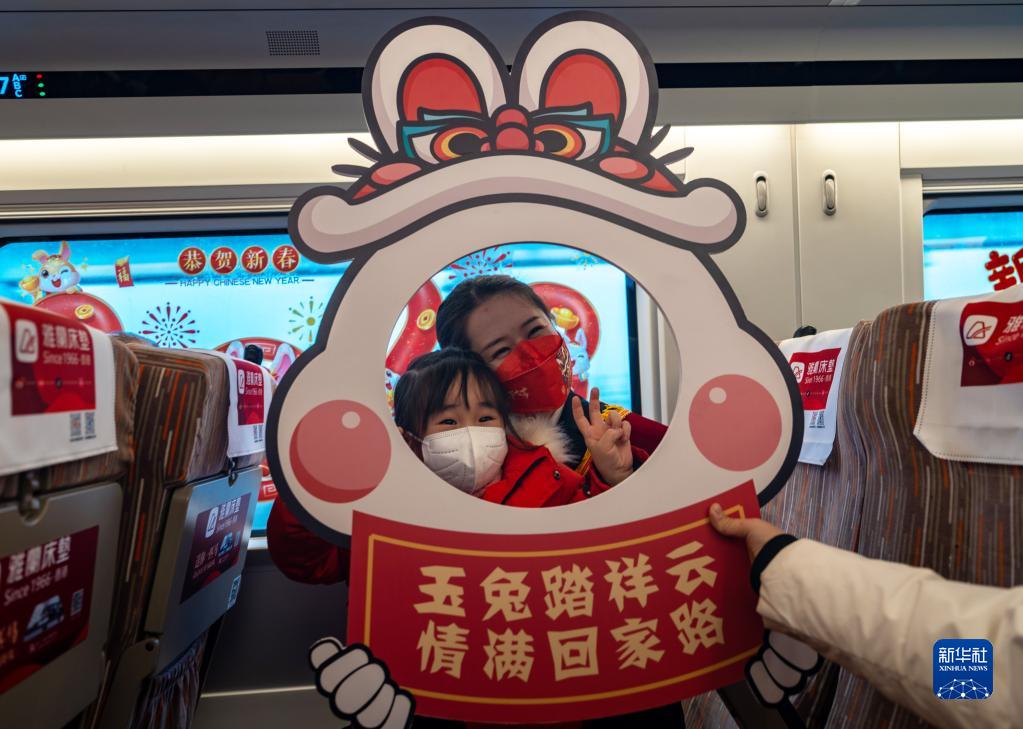 1月13日,在丹东开往上海虹桥的G1230次列车上,列车乘务人员为旅客准备了一场热闹的高铁联欢会,在欢歌笑语中迎接农历小年。