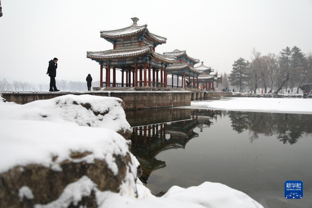 1月13日,游客在河北省承德市避暑山庄景区赏雪游玩。