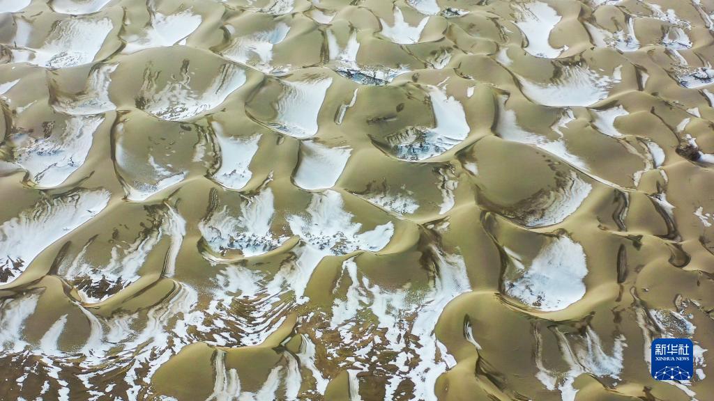 新疆阿克苏地区沙雅县以南的塔克拉玛干沙漠迎来降雪(1月14日摄,无人机照片)。