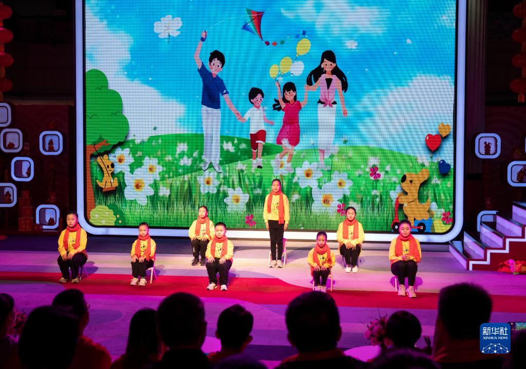 1月13日,来自美团外卖的“袋鼠宝贝之家·协作者童缘”的孩子们表演诗朗诵《骑手宝贝们送给爸爸妈妈的小诗》。