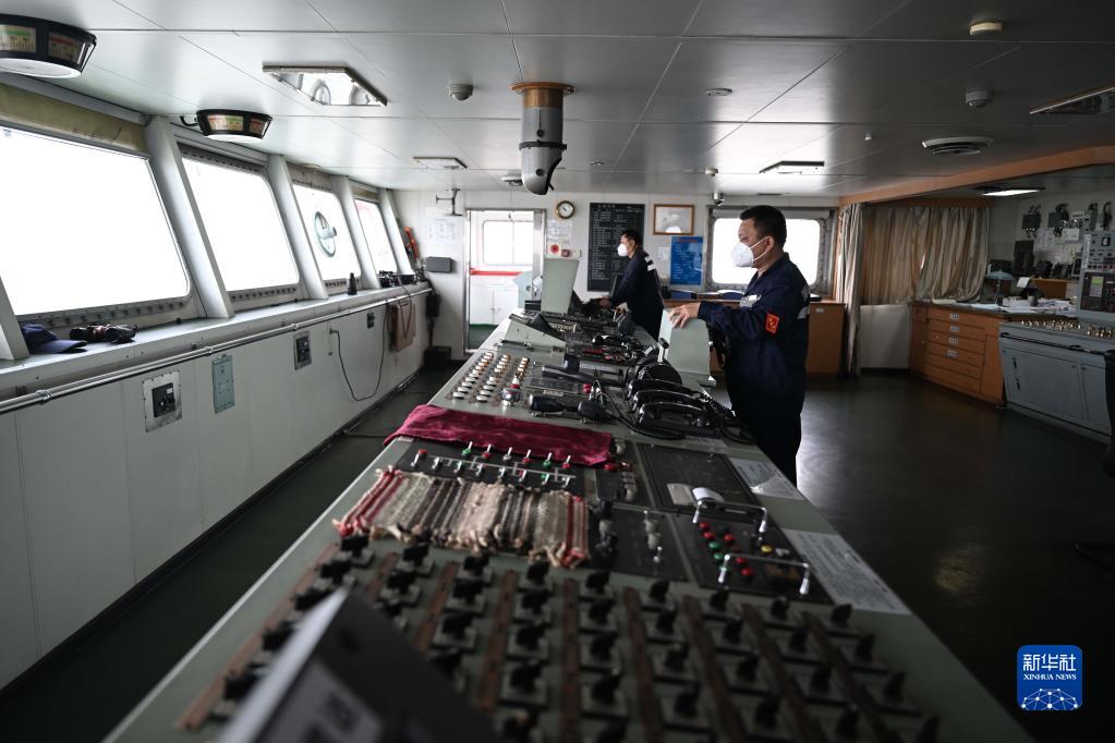 刘昱在粤海铁路轮渡驾驶台操舵(1月8日摄)。