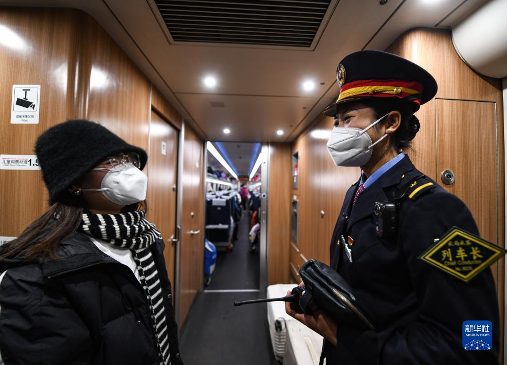 1月11日,在C43次列车上,阿依布卡(右)遇到表妹同乘。