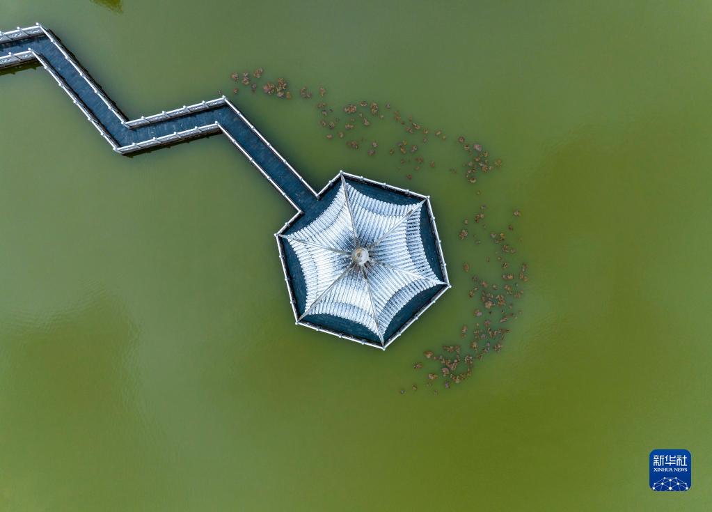 江苏省淮安市清晏园雪景(1月14日摄,无人机照片)。