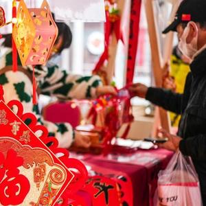 春节临近,人们采购年货,年味渐浓。
