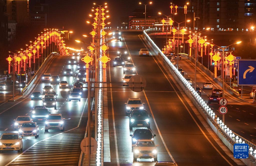 随着春节临近,北京长安街等街道两侧点亮灯饰,年味渐浓。