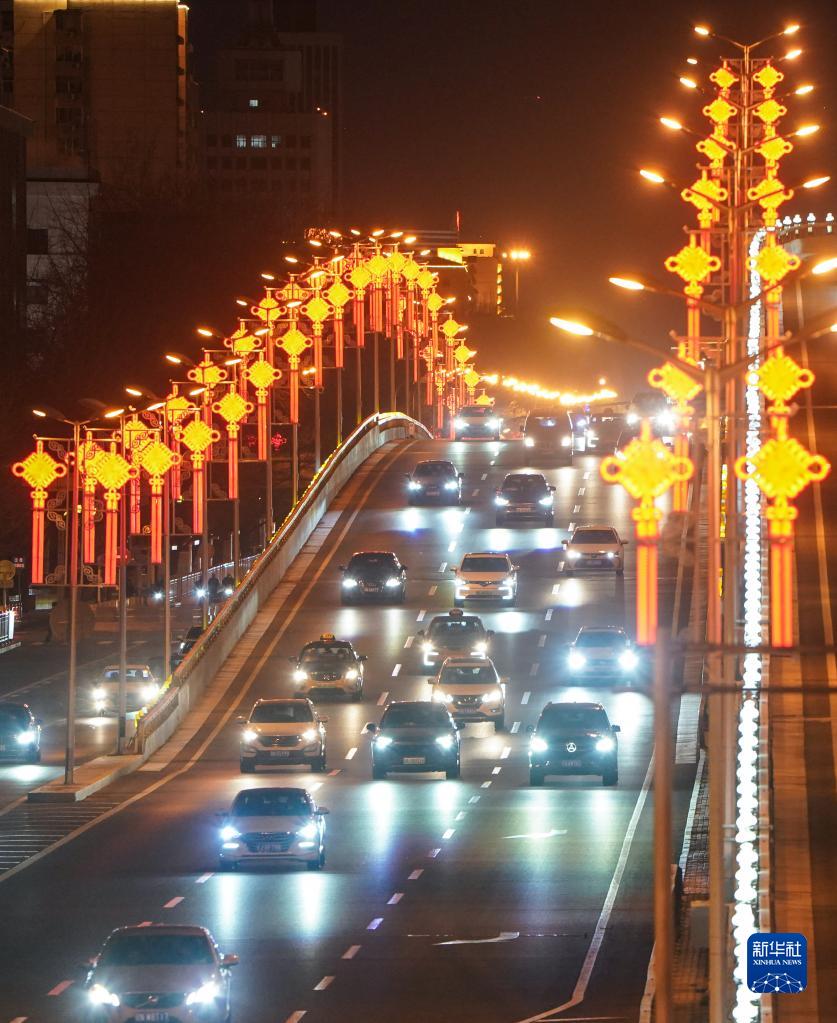 随着春节临近,北京长安街等街道两侧点亮灯饰,年味渐浓。