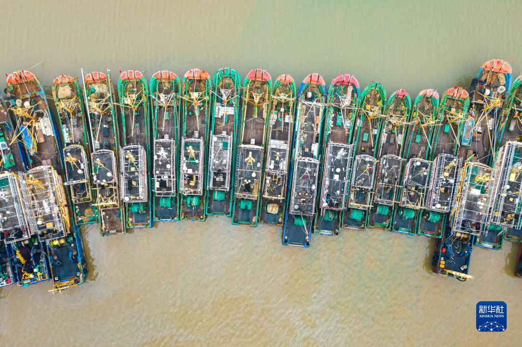 寒潮来袭,浙江省温岭市石塘镇中心渔港众多渔船进港,躲避寒潮大风天气。新华社发(徐伟杰 摄)
