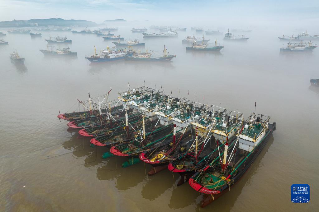 寒潮来袭,浙江省温岭市石塘镇中心渔港众多渔船进港,躲避寒潮大风天气。新华社发(徐伟杰 摄)