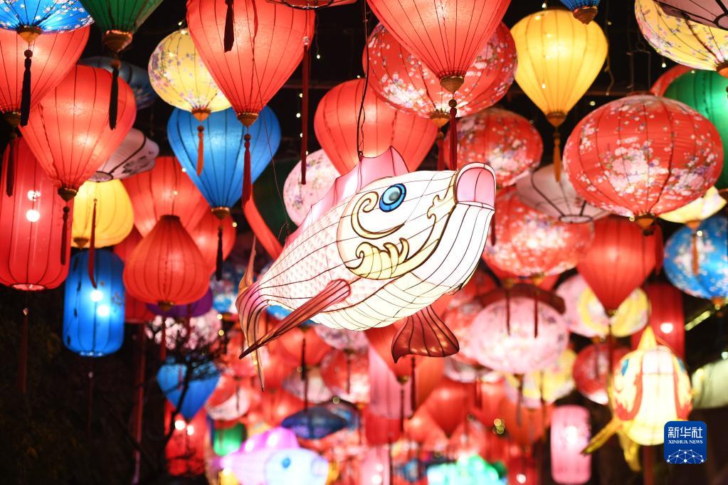 当晚,第37届中国·秦淮灯会在南京夫子庙景区举行点灯仪式,吸引不少市民游客。本届灯会共设置各类灯组170组。新华社发(杨素平摄)
