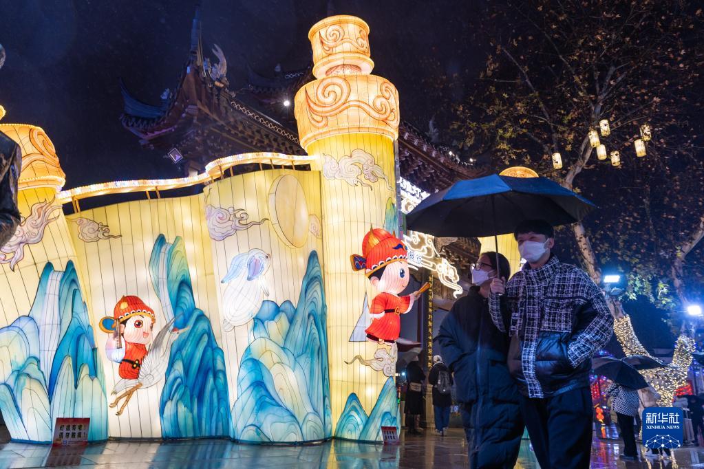 1月14日,游人在夫子庙景区观赏花灯。