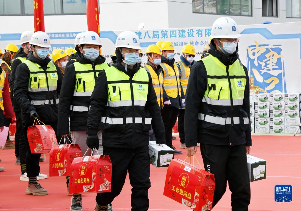 当日,山东省青岛市总工会走访部分重点工程项目工地,为春节期间坚守岗位的建设者们送上新春的祝福。