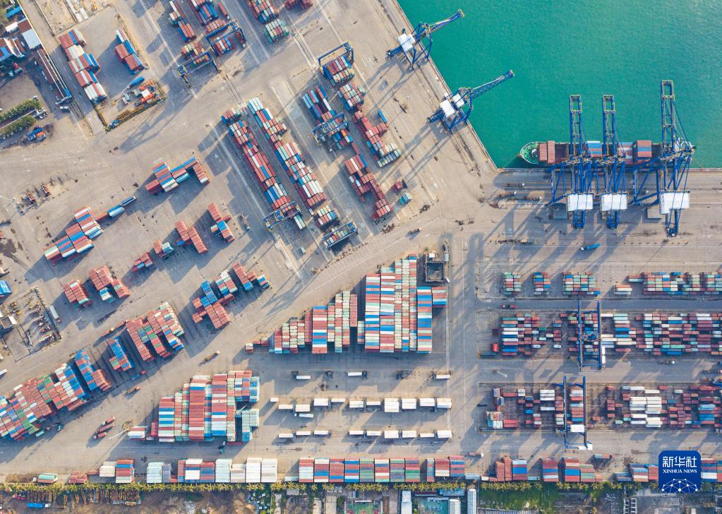 在海南省海口市拍摄的海口港集装箱码头(无人机照片,1月13日摄)。
