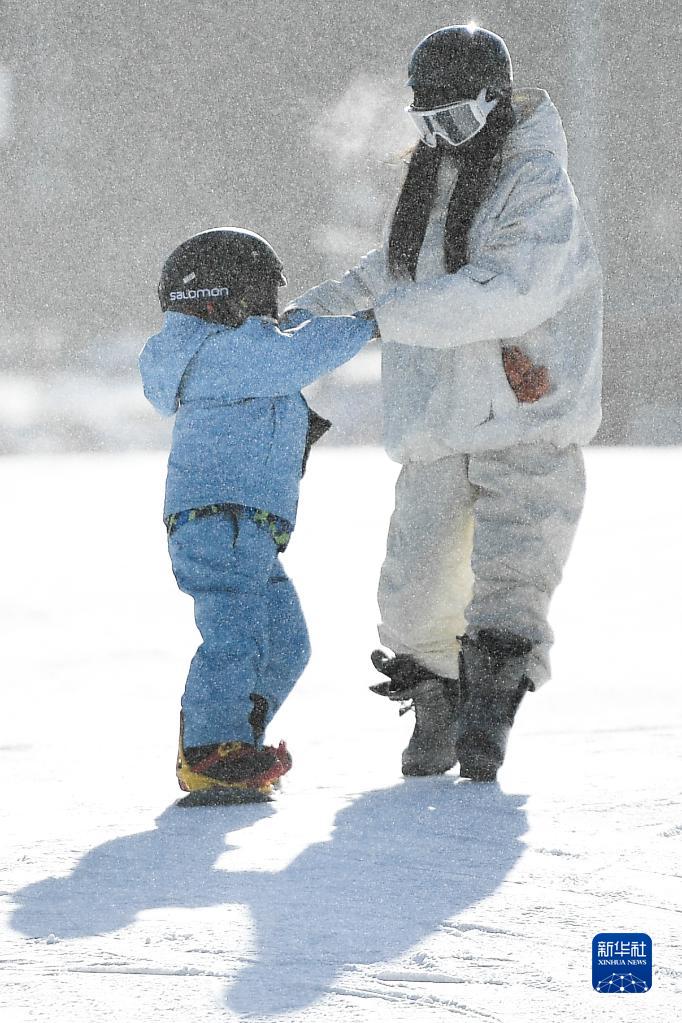 在吉林省吉林市,学生们利用寒假时光参加户外冰雪运动,尽享冰雪乐趣。