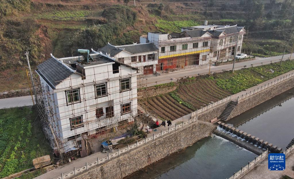 这是1月10日在富民村拍摄的改造中的民居(无人机照片)。