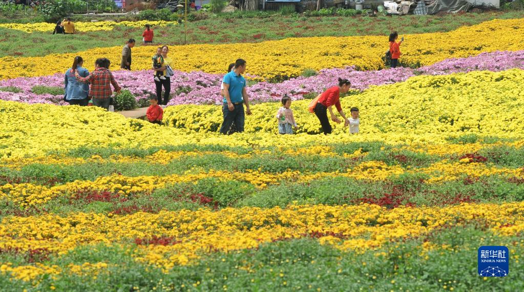 2018年富民村首届菊花节现场,游客在富民村赏花(资料照片)。