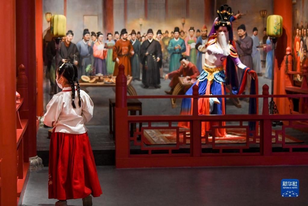 在乌鲁木齐市博物馆内,一名小朋友在参观展品(1月14日摄)。