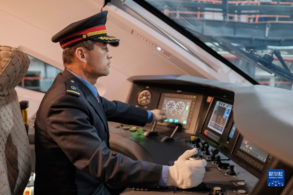 在拉萨机辆整备中心,黄起岗将动车组驶入停车位置(1月11日摄)。