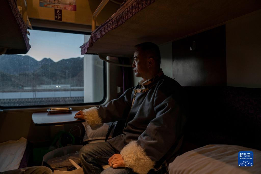 在拉萨火车站,黄起岗等待回家的火车发车(1月16日摄)。