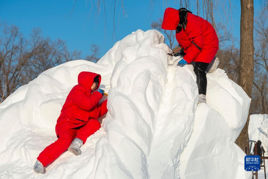 当日,在“冰城”哈尔滨市太阳岛雪博会园区内举行的第二十九届全国雪雕比赛进入第二个比赛日,来自国内15支队伍的数十名雪雕高手在赛场上比拼技艺,不少参赛雪雕作品已初见雏形。