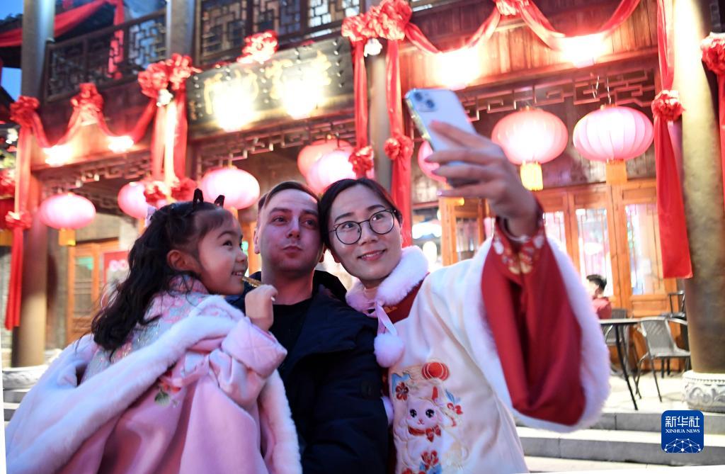 1月13日,乔丹一家在洛阳市洛邑古城内自拍留念。