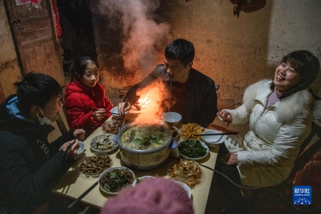 1月15日,在湖北十堰的家中,易生军与家人一起吃晚饭。