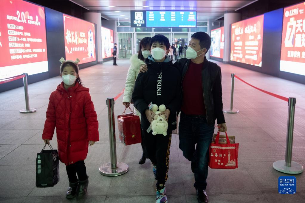 1月15日,易生军在湖北十堰东站出站口与家人团聚。