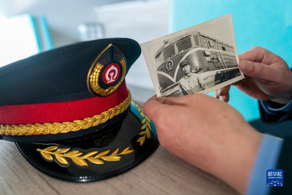 1月15日,丁建华展示父亲丁校文年轻时与火车头的合影。