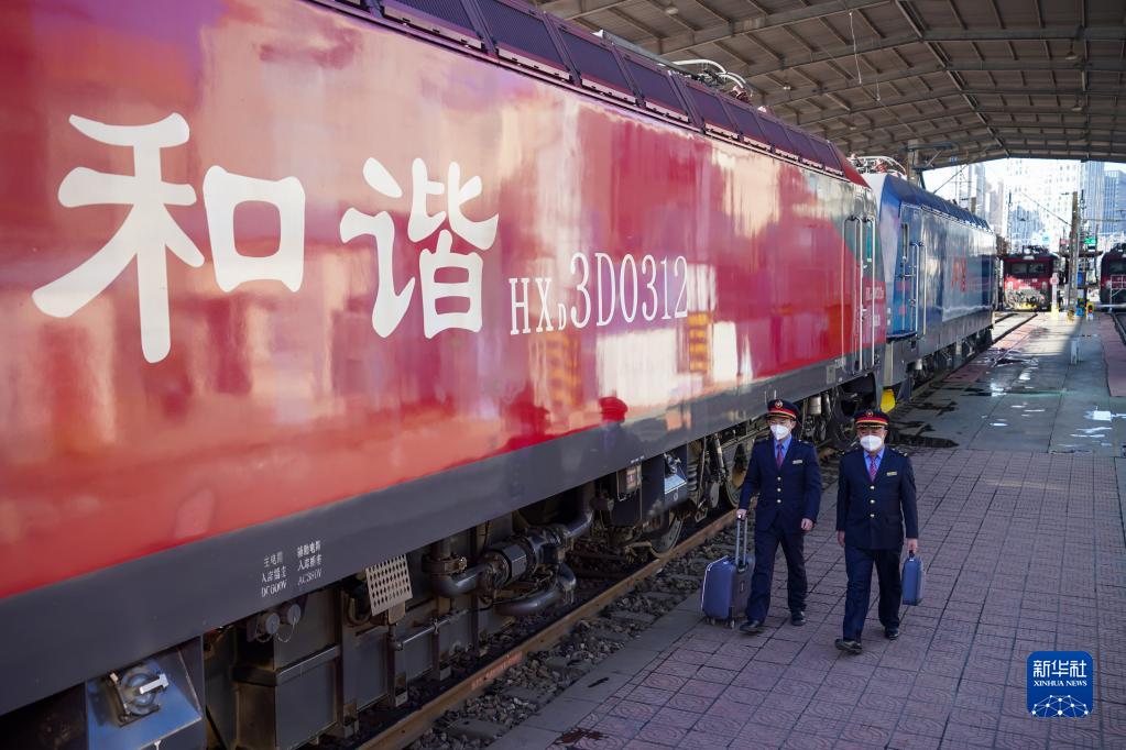 1月15日,丁建华(右)和徒弟姜庭瑞经过即将驾驶的火车头。