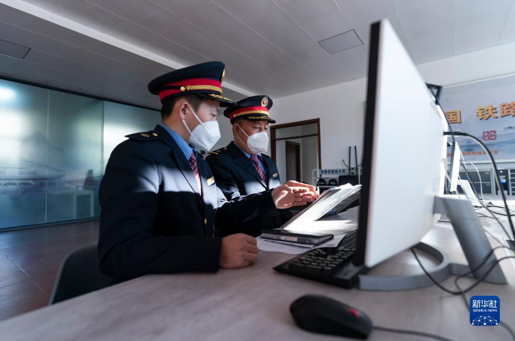 1月15日,丁建华(右)和徒弟姜庭瑞在出车前核对行车注意事项。