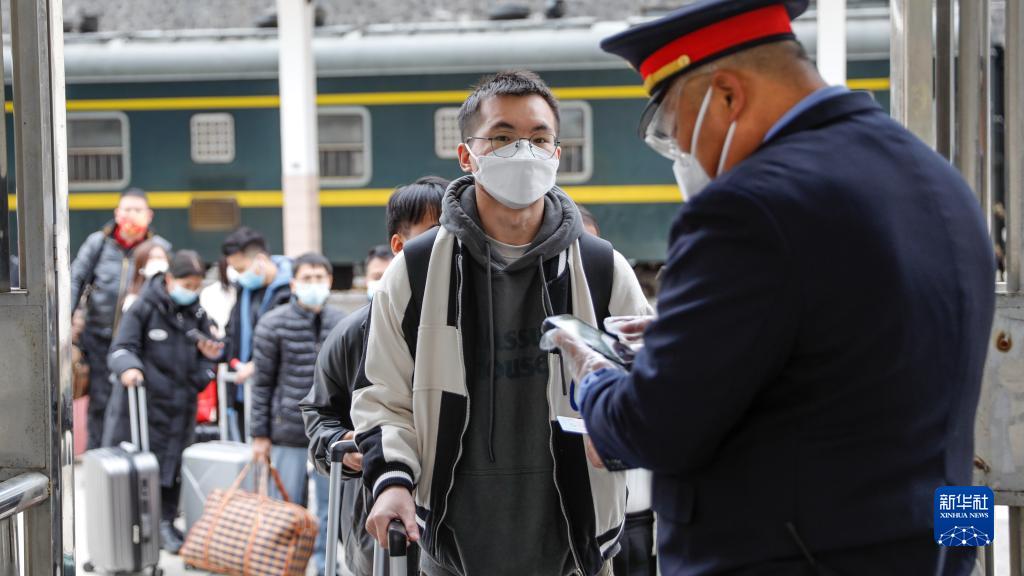 1月16日,旅客在册亨站出站口检票出站。
