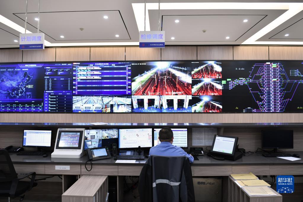 1月17日,工作人员在长沙西动车运用所合署指挥中心值守。
