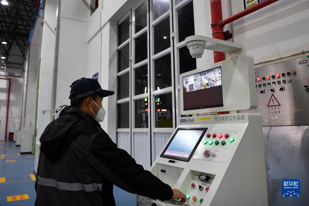 1月17日,检修员在长沙西动车运用所操作安全连锁监控系统。