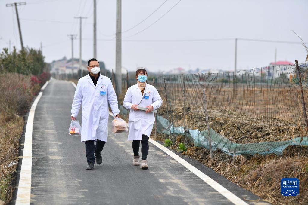 1月17日,在长沙市望城区乔口镇盘龙岭村,医护人员准备上门送医送药。