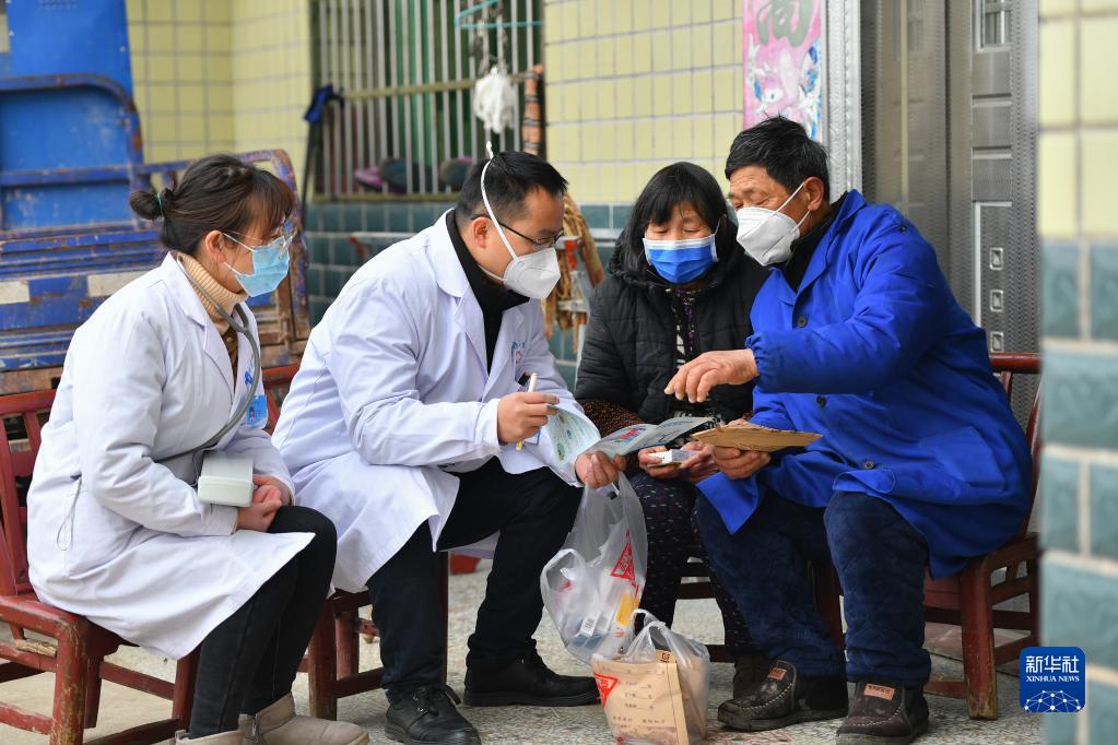 1月17日,在长沙市望城区乔口镇盘龙岭村,医护人员为老年人讲解中医药防治药方。