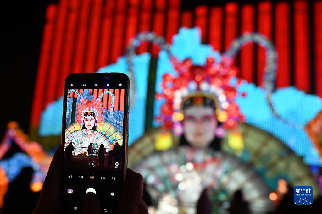1月16日晚,游客在四川省自贡市中华彩灯大世界观赏灯会。
