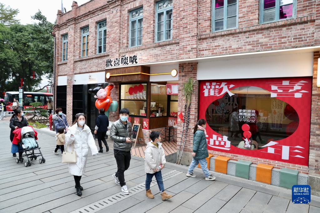 人们在福州烟台山商业漫步街区游玩(1月16日摄)。