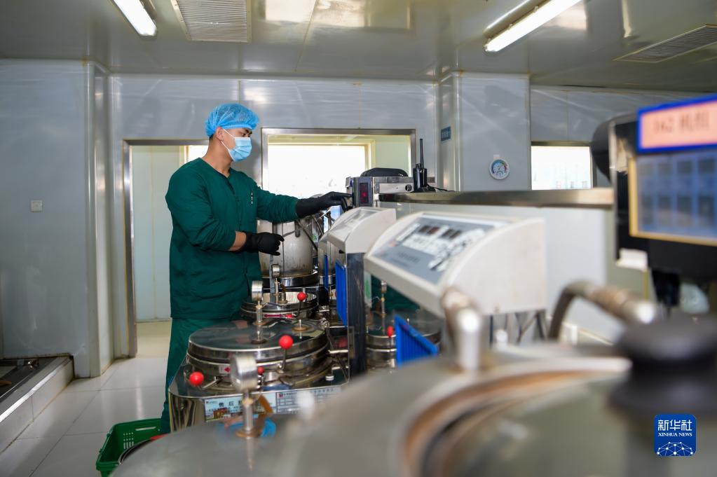 1月17日,内蒙古自治区中医医院药剂师在煎煮中药。