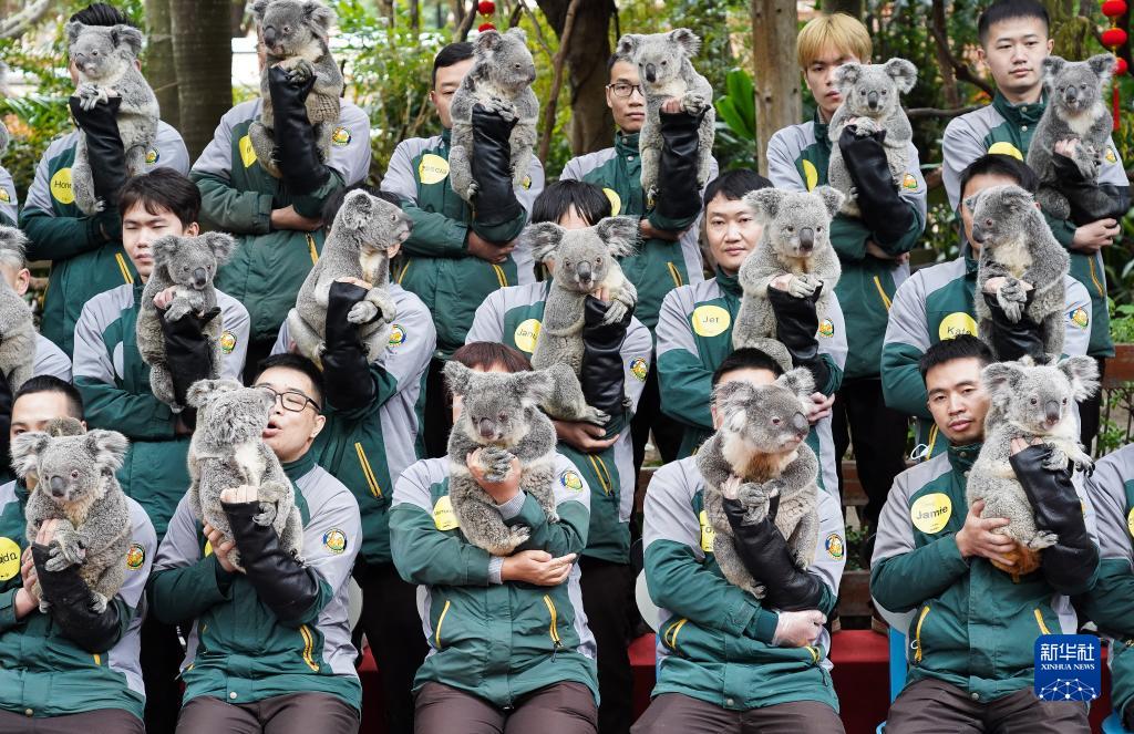 当日,广州长隆野生动物世界的7代66只考拉大家族集体亮相,喜迎农历春节。其中,出生于2004年的“淘淘”是首批从澳大利亚漂洋过海来到中国的考拉当中的一只,出生于2022年的“抱抱”是长隆考拉第七代新生宝宝。