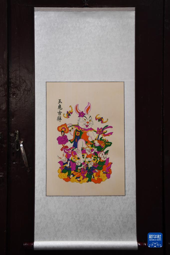 这是1月17日在滩头镇福美祥年画作坊拍摄的兔生肖年画。
