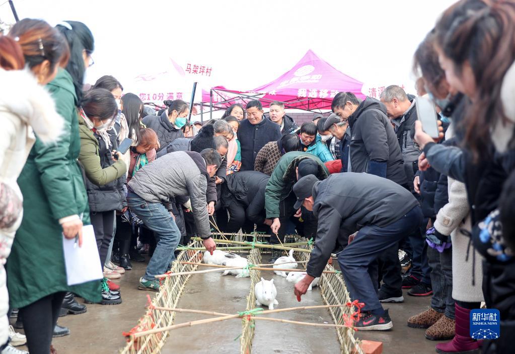 当日,四川省华蓥市永兴镇在马架坪村产业基地“玉兔园”组织开展“玉兔赛跑”趣味活动,人们在欢快祥和的氛围中迎接兔年的到来。