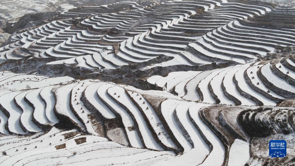 1月15日在甘肃省定西市安定区西巩驿镇拍摄的雪景(无人机照片)。