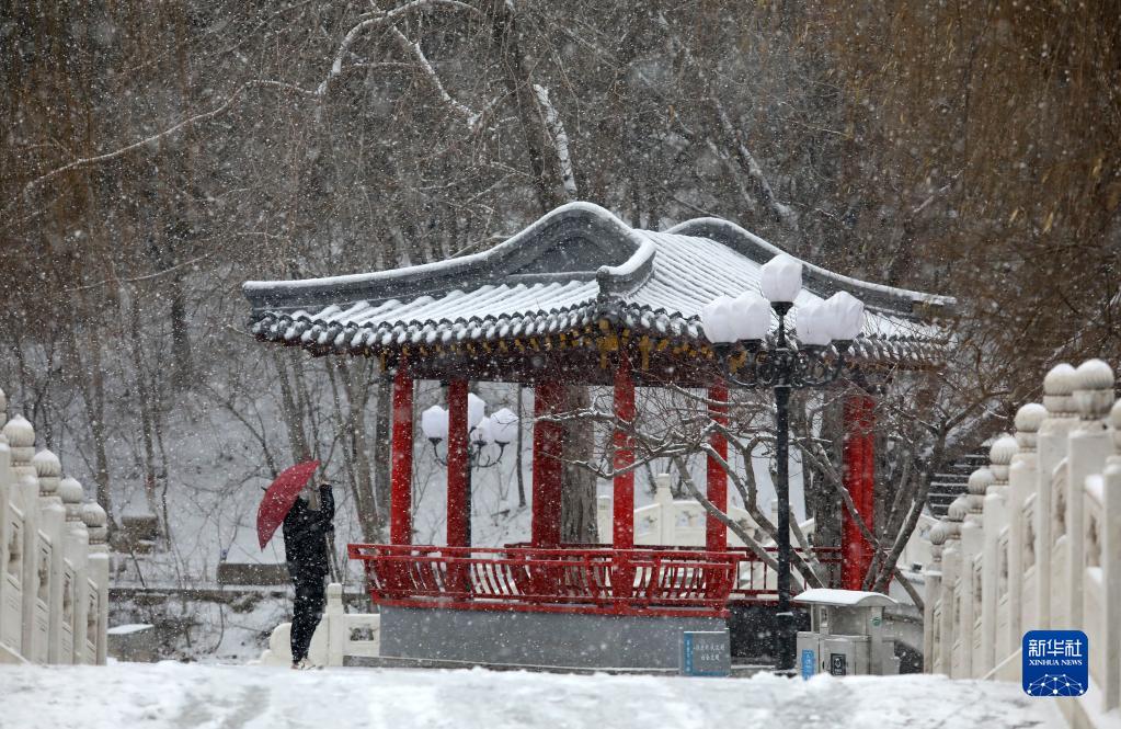 1月14日,市民在河北省石家庄市长安公园欣赏雪景。
